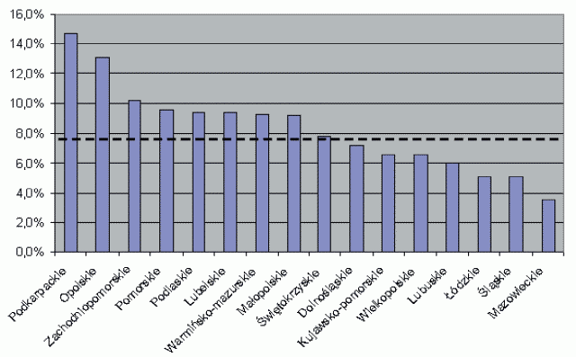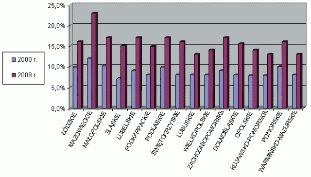 102 Dla Polski 8,8%, wobec 5,4% w UE-27, za: Szlachta J.: Wskaźniki decentralizacji inwestycji publicznych w Polsce na tle UE 27. Prezentacja w Szkole Głównej Handlowej, 2009 r.