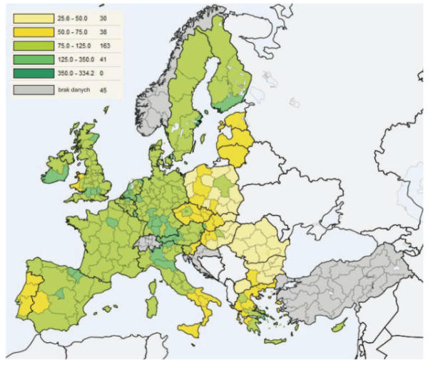114 Przy wykorzystaniu wskaźników z opracowania: Identyfikacja i delimitacja obszarów problemowych/ strategicznej interwencji. Część II metodologiczno-analityczna. Ekspertyza Instytutu Badań Strukturalnych dla Ministerstwa Rozwoju Regionalnego, 17 czerwca 2009 r..