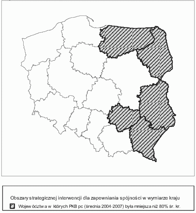 98 Mapa wskazuje przybliżoną grupę miast, do których kierowana będzie interwencja w ramach kierunku działań 2.3. Dokładne wyznaczenie obszarów zdegradowanych i tych części miast, które wymagają interwencji odbywać się będzie na poziomie regionalnym. Obszary te będą wskazane w Strategii Rozwoju Województwa oraz w Planie Zagospodarowania Przestrzennego Województwa.