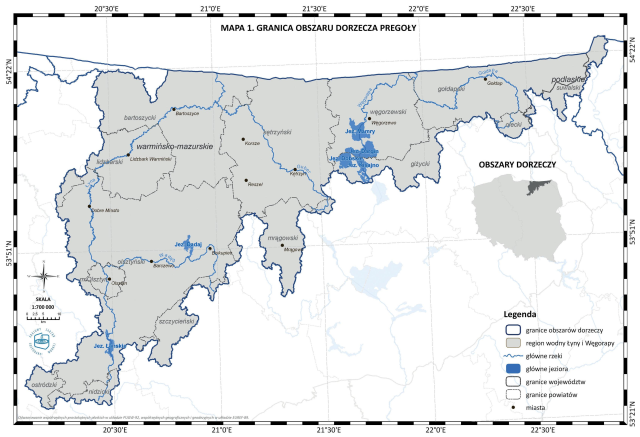 * Mapa 1. Granica obszaru dorzecza Pregoły