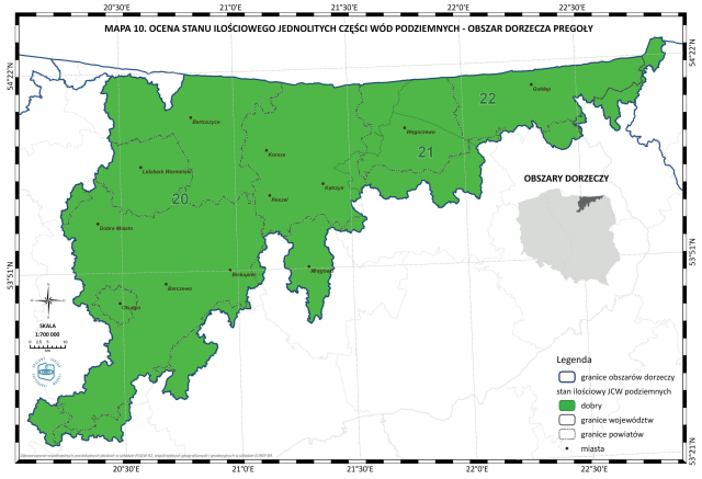 * Mapa 10. Ocena stanu ilościowego jednolitych części wód podziemnych - obszar dorzecza Pregoły
