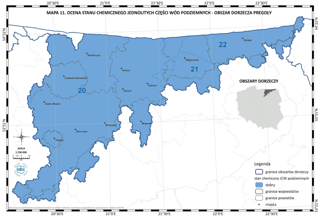 * Mapa 11. Ocena stanu chemicznego jednolitych części wód podziemnych - obszar dorzecza Pregoły