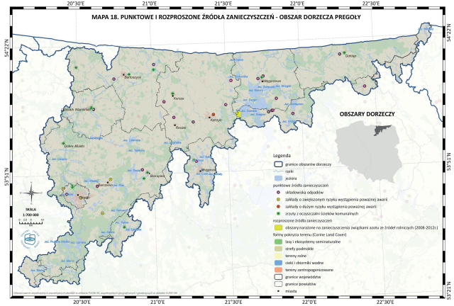 * Mapa 18. Punktowe i rozproszone źródła zanieczyszczeń - obszar dorzecza Pregoły