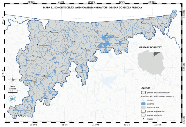 * Mapa 2. Jednolite części wód powierzchniowych - obszar dorzecza Pregoły