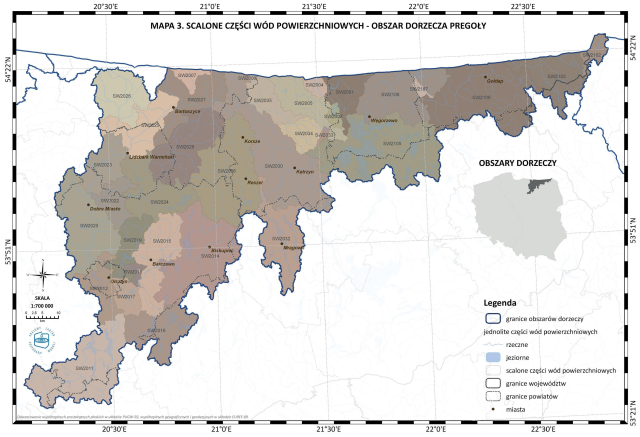 * Mapa 3. Scalone części wód powierzchniowych - obszar dorzecza Pregoły