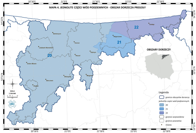 * Mapa 4. Jednolite części wód podziemnych - obszar dorzecza Pregoły