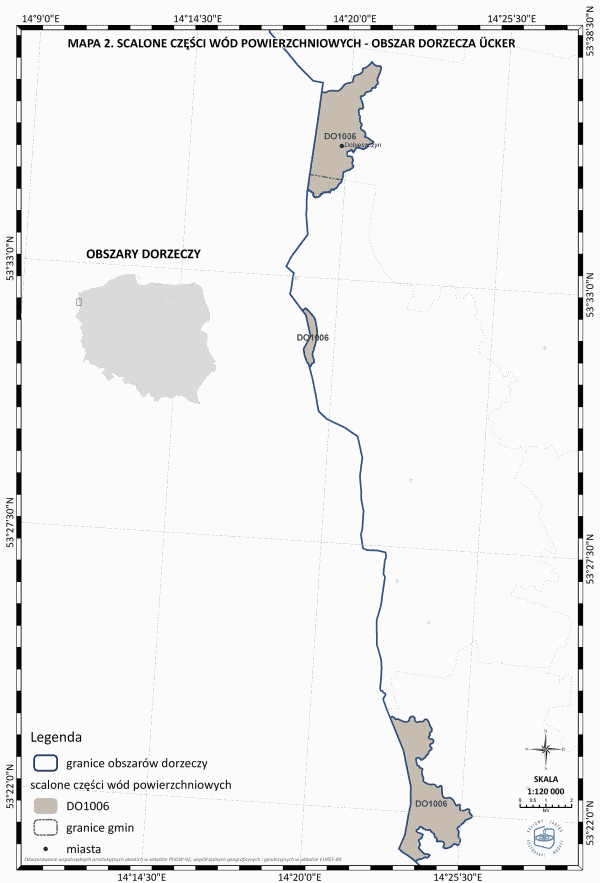 * Mapa 2. Scalone części wód powierzchniowych - obszar dorzecza Ücker
