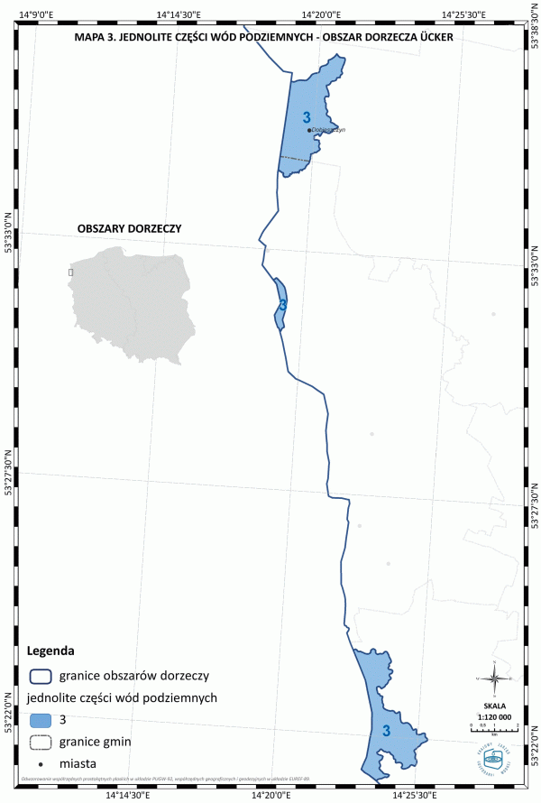 * Mapa 3. Jednolite części wód podziemnych - obszar dorzecza Ücker