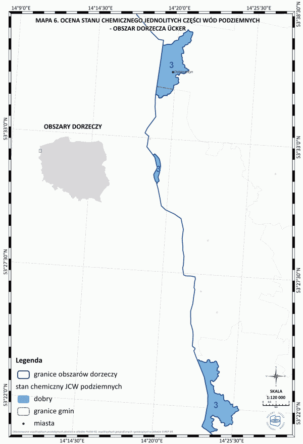 * Mapa 6. Ocena stanu chemicznego jednolitych części wód podziemnych - obszar dorzecza Ücker