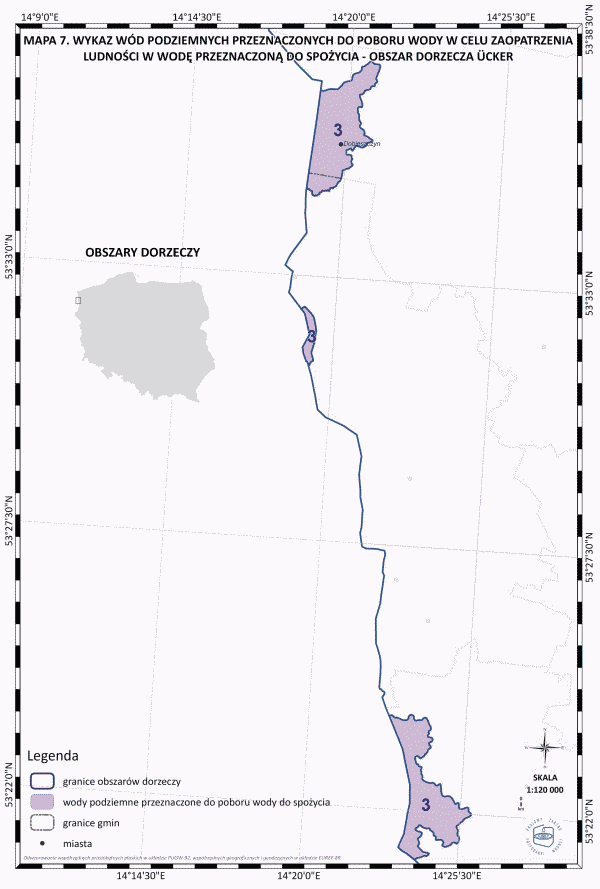 * Mapa 7. Wykaz wód podziemnych przeznaczonych do poboru wody w celu zaopatrzenia ludności w wodę przeznaczoną do spożycia - obszar dorzecza Ücker