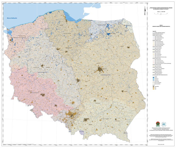 * Mapa nr 1. Granice obszarów dorzeczy i regionów wodnych