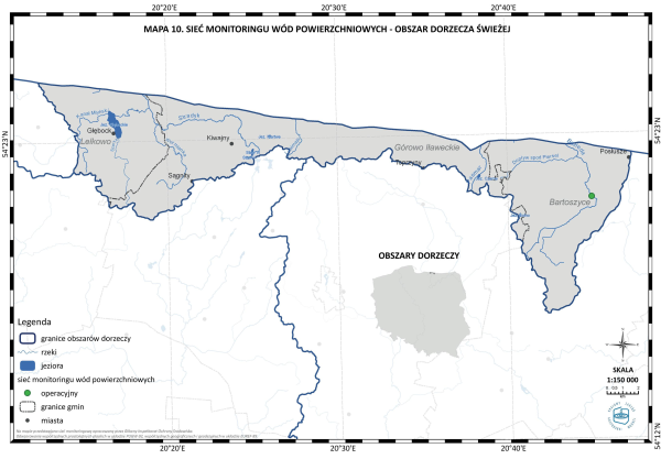 * Mapa 10. Sieć monitoringu wód powierzchniowych - obszar dorzecza Świeżej