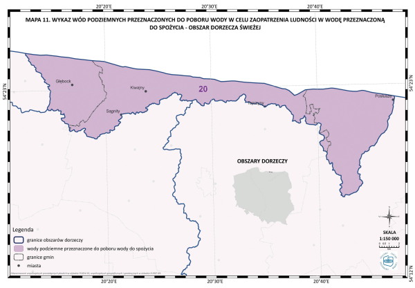 * Mapa 11. Wykaz wód podziemnych przeznaczonych do poboru wody w celu zaopatrzenia ludności w wodę przeznaczoną do spożycia - obszar dorzecza Świeżej