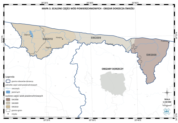 * Mapa 3. Scalone części wód powierzchniowych - obszar dorzecza Świeżej