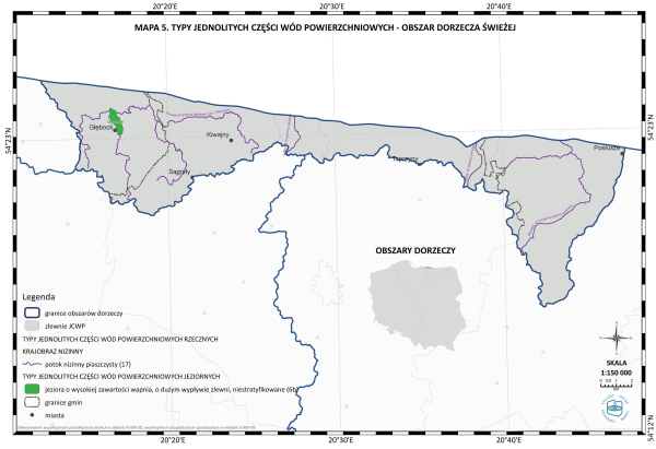 * Mapa 5. Typy jednolitych części wód powierzchniowych-obszar dorzecza Świeżej