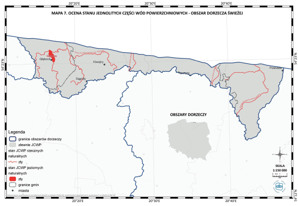 * Mapa 7. Ocena stanu jednolitych części wód powierzchniowych - obszar dorzecza Świeżej