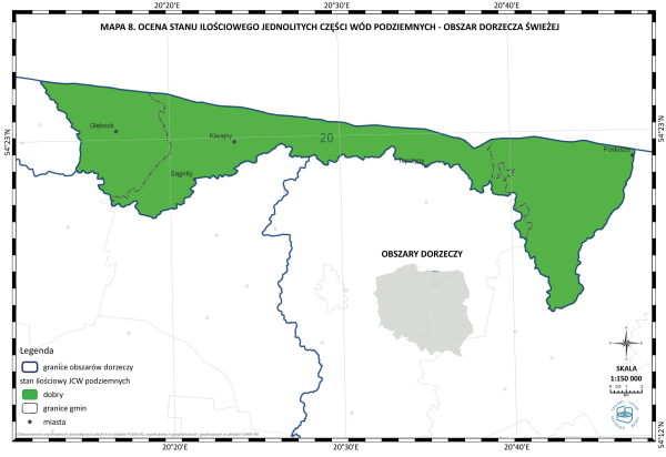 * Mapa 8. Ocena stanu ilościowego jednolitych części wód podziemnych - obszar dorzecza Świeżej