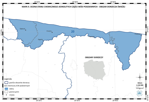 * Mapa 9. Ocena stanu chemicznego jednolitych części wód podziemnych - obszar dorzecza Świeżej