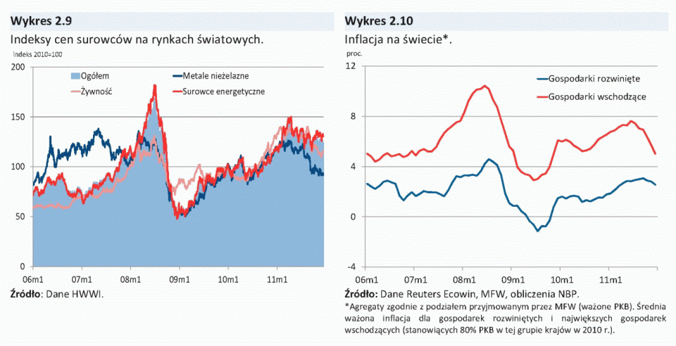 Korzystna koniunktura w gospodarce światowej, zwłaszcza w krajach wschodzących, sprzyjała wzrostowi popytu na surowce, co oddziaływało w kierunku wzrostu ich cen. Rosnące ceny surowców przyczyniały się z kolei do podwyższenia inflacji na świecie. W gospodarkach wschodzących presja inflacyjna była ponadto wzmacniana przez silny wzrost gospodarczy.