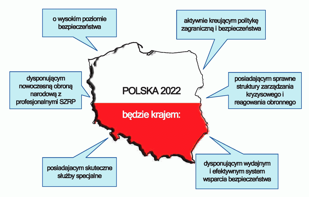 Zapewnienie bezpieczeństwa państwa oraz jego obywateli należy do żywotnych interesów narodowych Rzeczypospolitej Polskiej. Bezpieczeństwo narodowe oznacza zdolność państwa i jego społeczeństwa do zapewnienia warunków jego istnienia i rozwoju, integralności terytorialnej, niezależności politycznej, stabilności wewnętrznej oraz jakości życia. Zdolność ta jest kształtowana poprzez działania polegające na wykorzystaniu szans, podejmowaniu wyzwań, redukowaniu ryzyka oraz eliminowaniu zagrożeń zewnętrznych i wewnętrznych, co zapewnia trwanie, tożsamość, funkcjonowanie i swobody rozwojowe państwa i narodu (społeczeństwa)1.