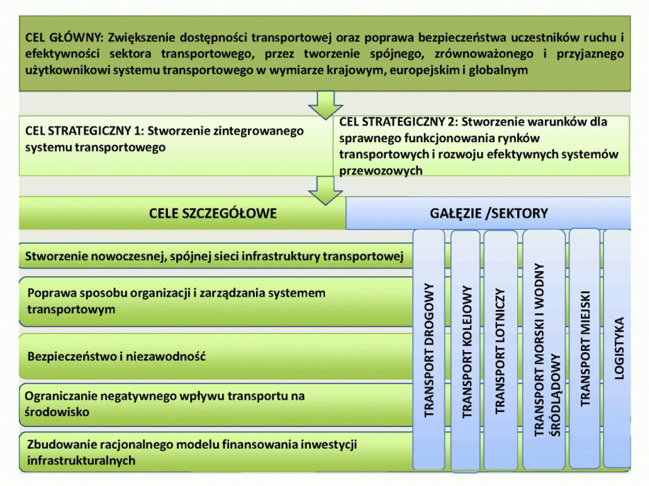 Główny cel Strategii Rozwoju Transportu odnosi się zarówno do utworzenia zintegrowanego systemu transportowego poprzez inwestycje w infrastrukturę transportową (cel strategiczny 1), jak i wykreowania sprzyjających warunków dla sprawnego funkcjonowania rynków transportowych i rozwoju efektywnych systemów przewozowych (cel strategiczny 2).