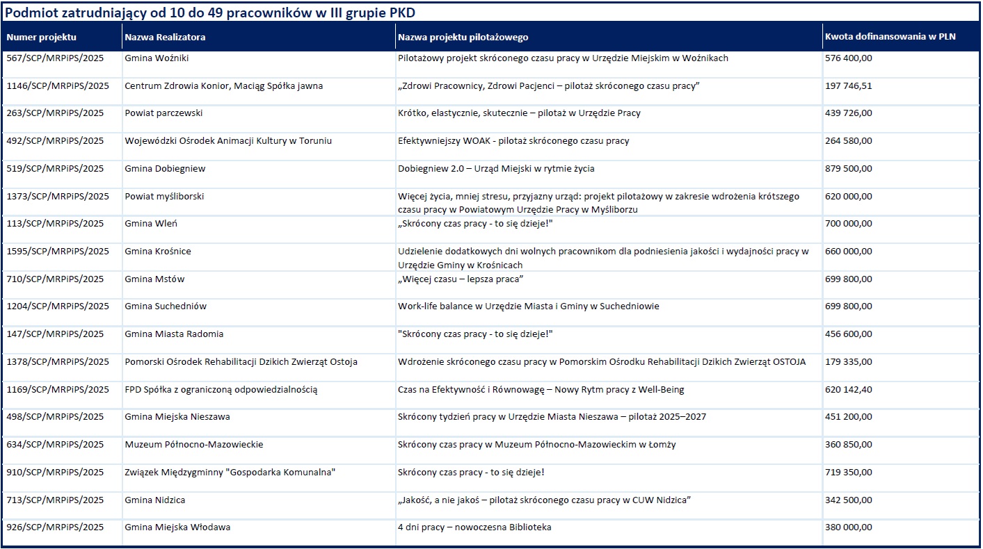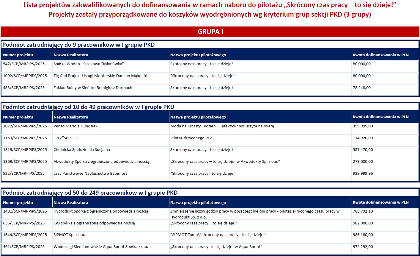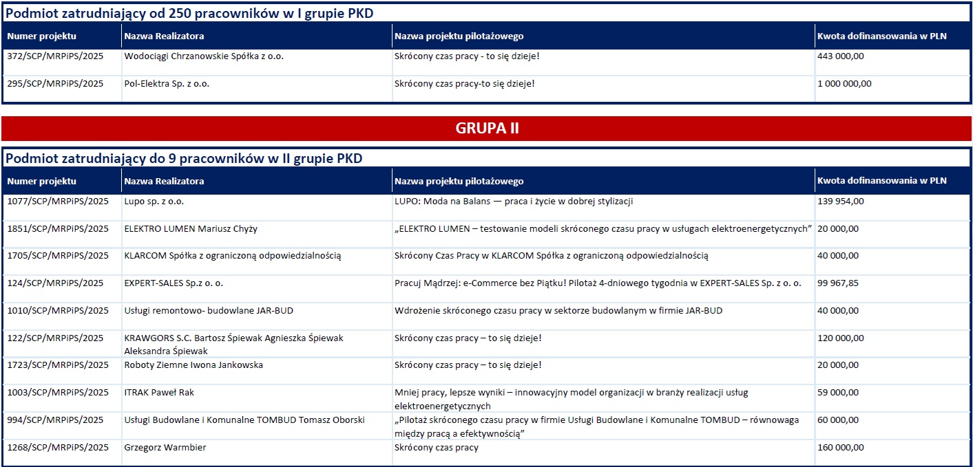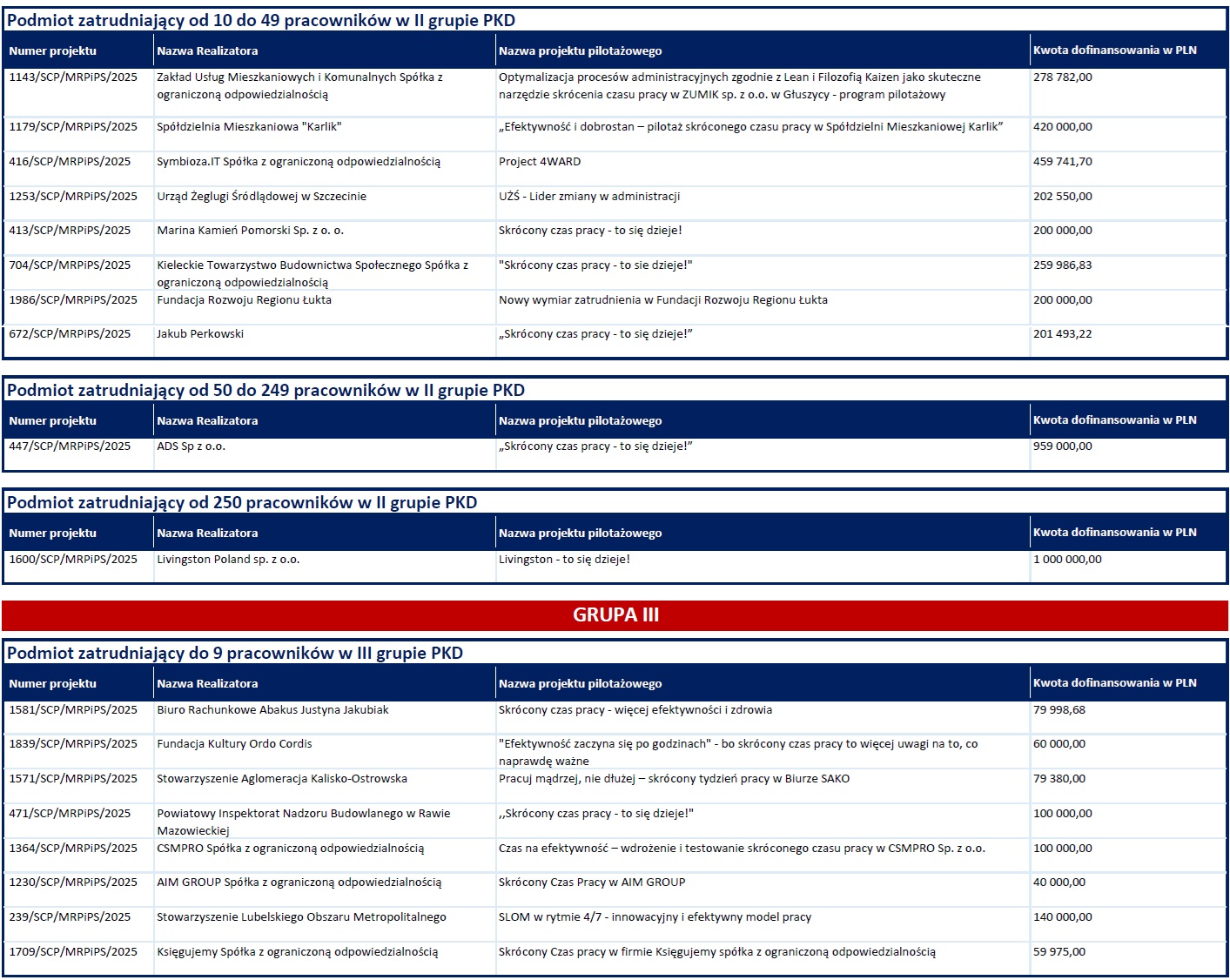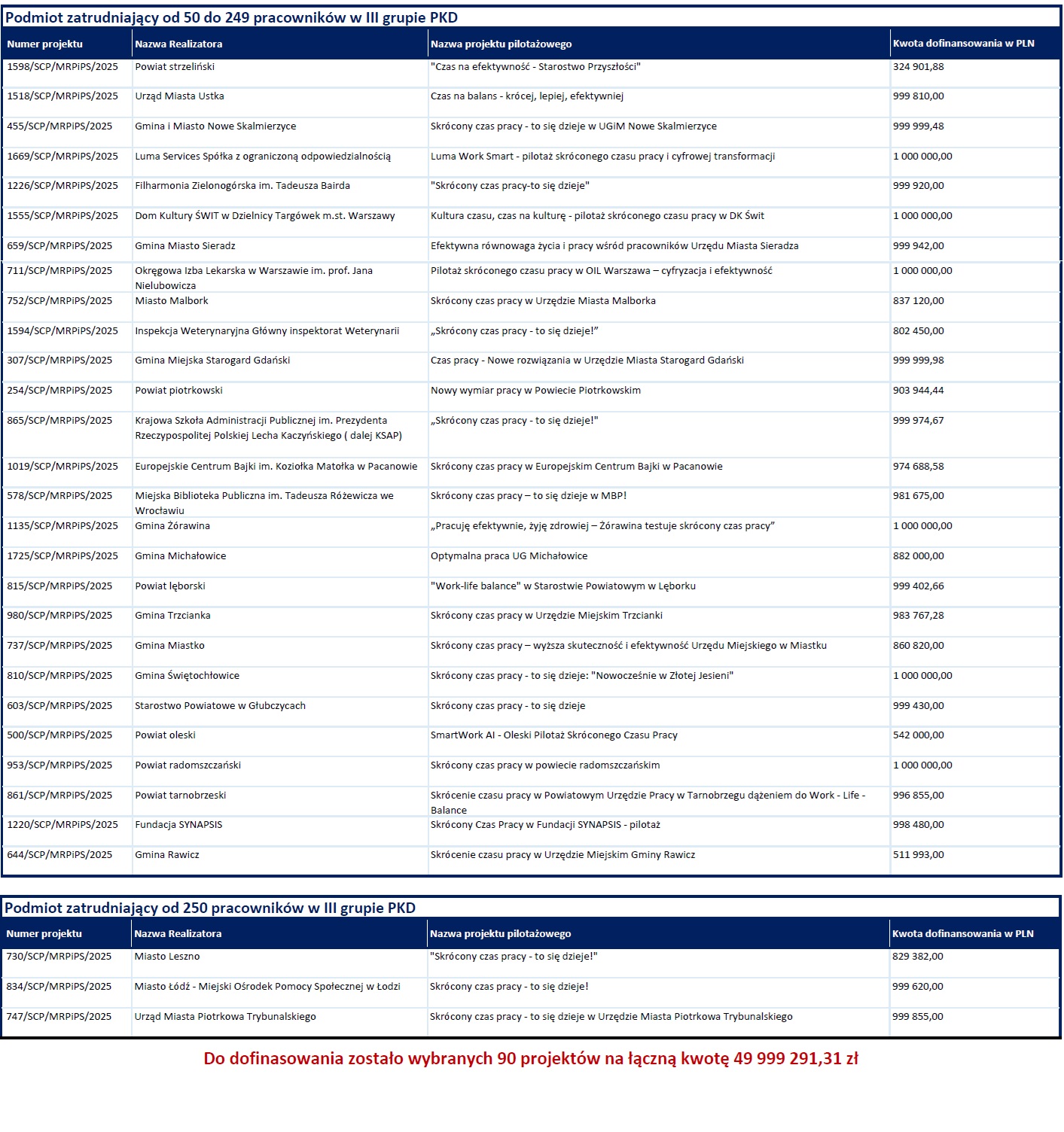 Lista projektów zakwalifikowanych do dofinansowania w ramach naboru do pilotażu „Skrócony czas pracy – to się dzieje!”